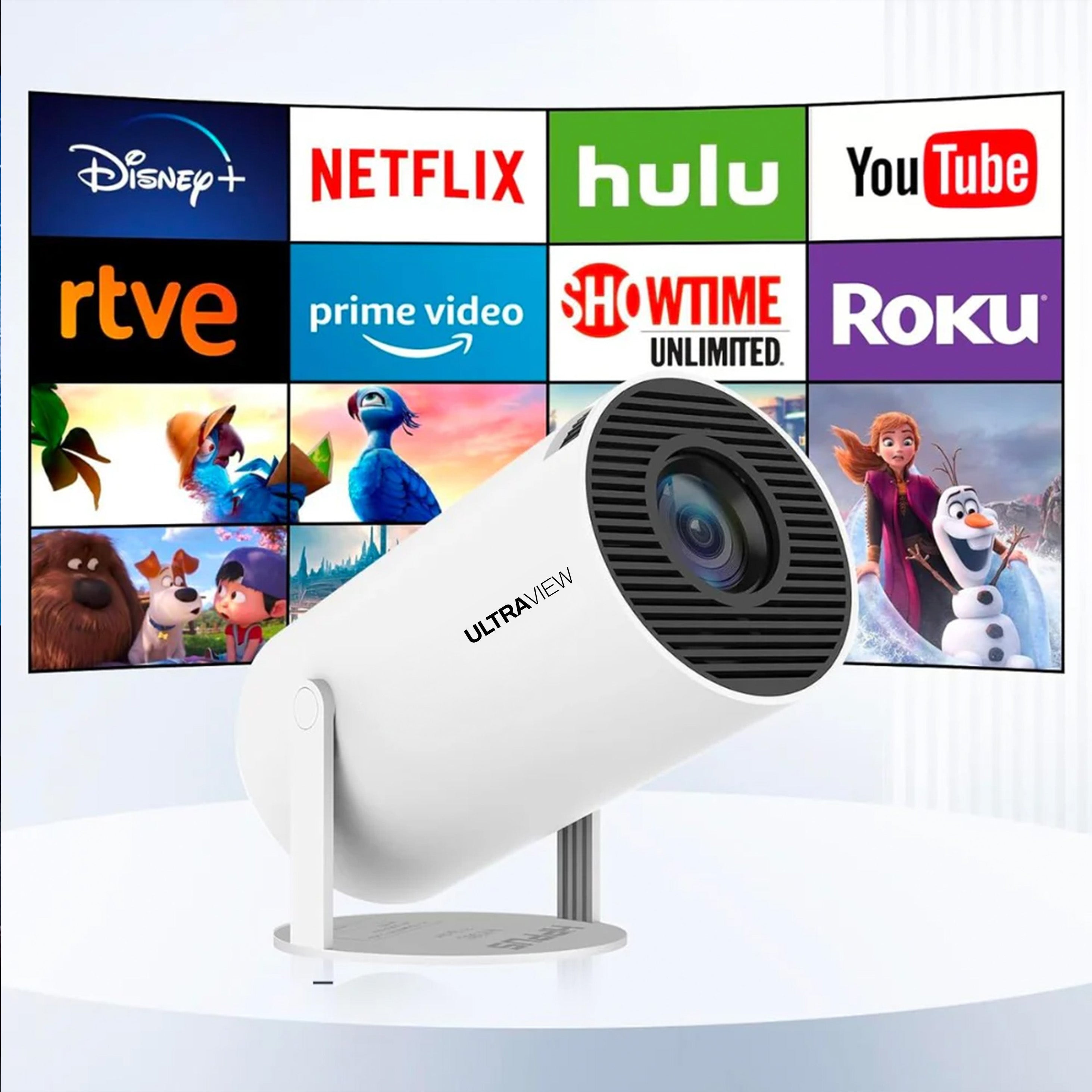 Stream Without Limits – Works with Netflix, Disney+, YouTube & 1000+ channels on UltraView's built-in smart platform.